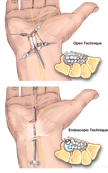 - infections or growths within the tunnel that take up space and compress the median nerve.
